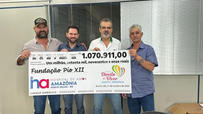 Nesta semana, o cheque simbólico foi entregue ao núcleo do Hospital de Amor, consolidando o compromisso da comunidade de Buritis em apoiar essa importante causa.
