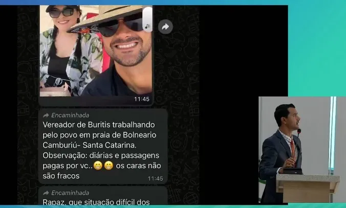 O vereador Dhionatas Tassos (MDB) utilizou a tribuna para esclarecer informações divulgadas em redes sociais sobre uma viagem pessoal realizada recentemente.