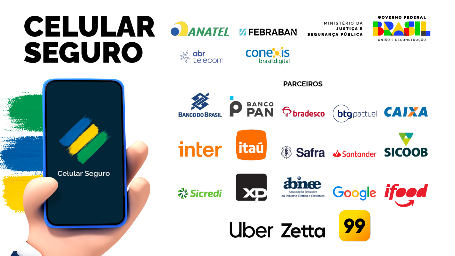 Empresas participantes da Federação Brasileira dos Bancos (Febraban) estiveram na solenidade de lançamento do Celular Seguro, realizada em Brasília nesta terça-feira (19). Dentre eles estão Banco do Brasil, Bradesco, BTG Pactual, Caixa, Inter, Itaú, Santander e XP.