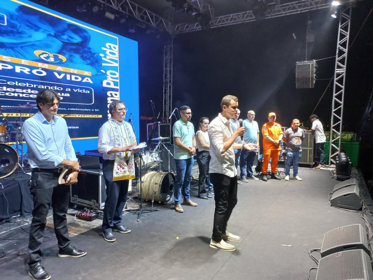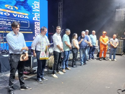 Foi aberta oficialmente na noite de ontem, 2, na Praça das Fontes, a Semana Pró-Vida, em Sorriso. O evento ecumênico contou com a presença de autoridades como o prefeito Alei Fernandes, o presidente da Câmara de Sorriso, Rodrigo Matterazzi, a secretária da Mulher e da Família, Mara Fernandes, o pároco Padre Valdir Koch e o presidente do Conselho de Pastores, João Marçal. Os vereadores Adir Cunico, Diogo Kriguer e Gringo do Barreiro também estiveram presentes.