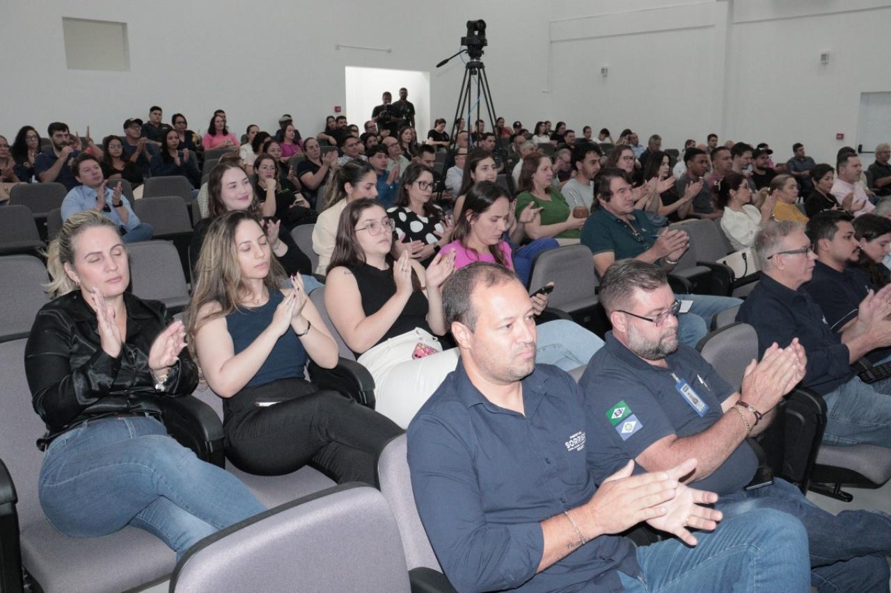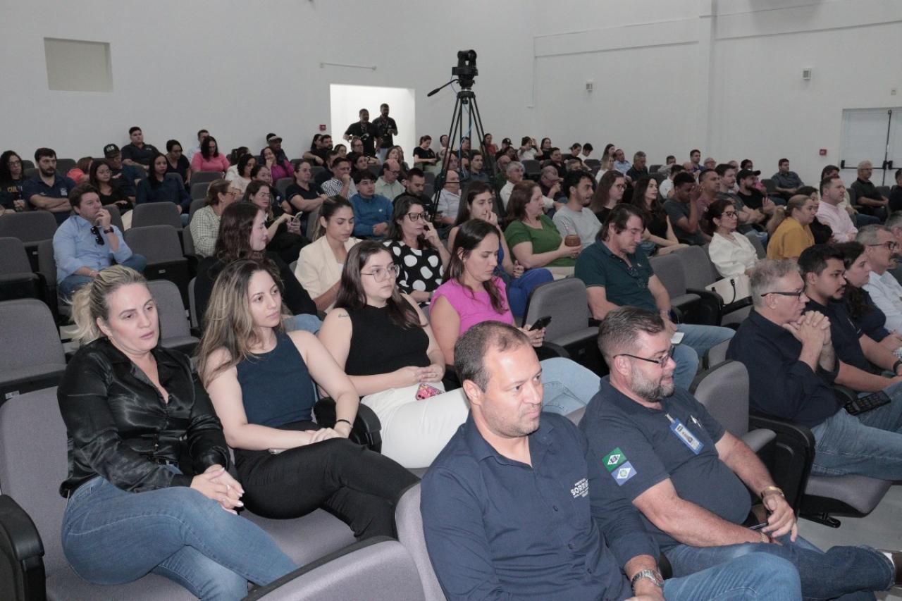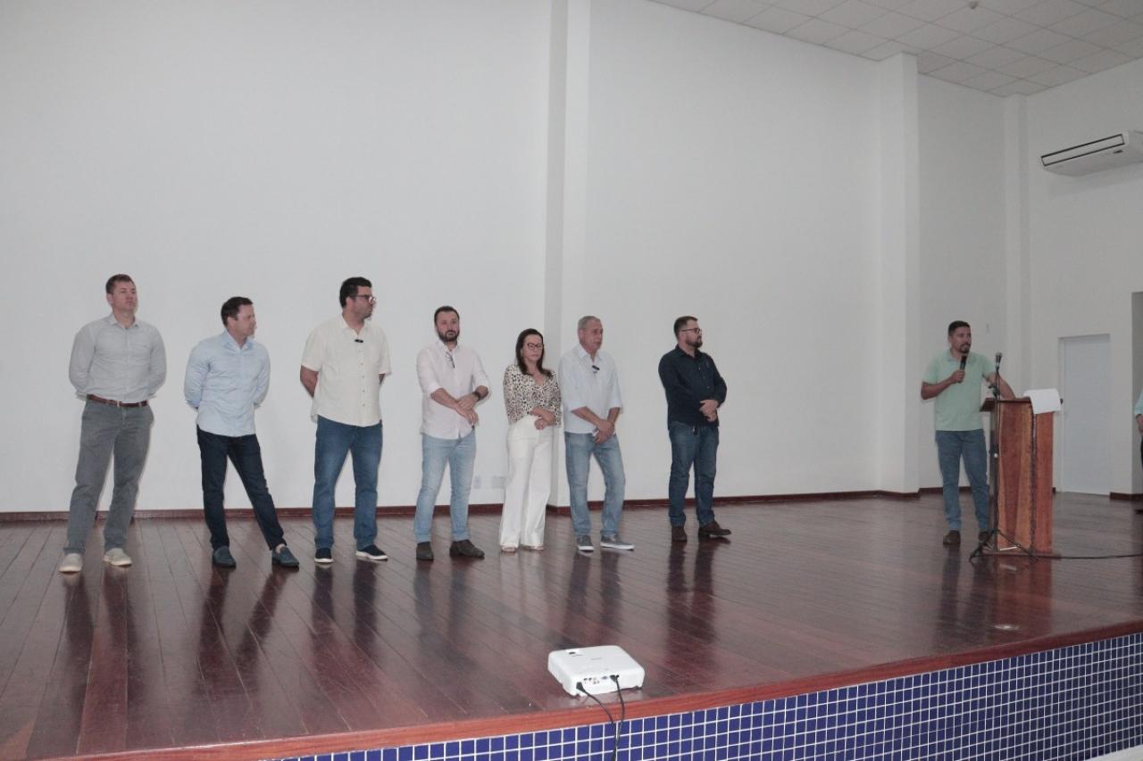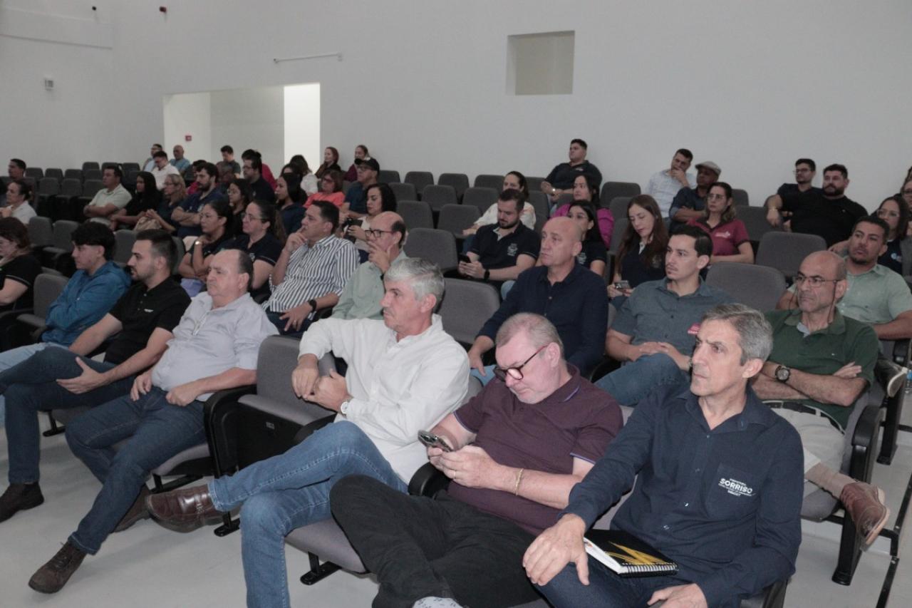 O presidente da Câmara de Sorriso, Rodrigo Matterazzi, e os vereadores Adir Cunico, Brendo Braga e Wanderley Paulo acompanharam na manhã desta quarta-feira, 15, o lançamento do aplicativo Credencia + Sorriso, no Centro de Eventos Ari José Riedi. A iniciativa cria um sistema tecnológico de credenciamento de empresas do município com objetivo de conectá-las às oportunidades de fornecimento da Prefeitura local.