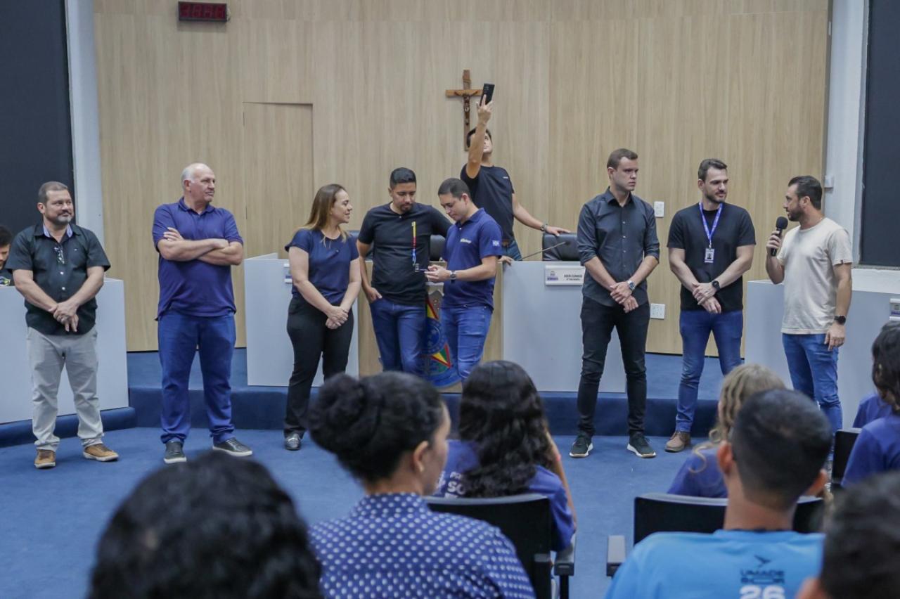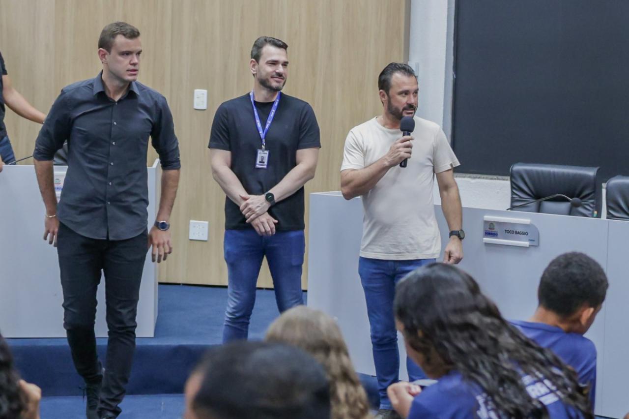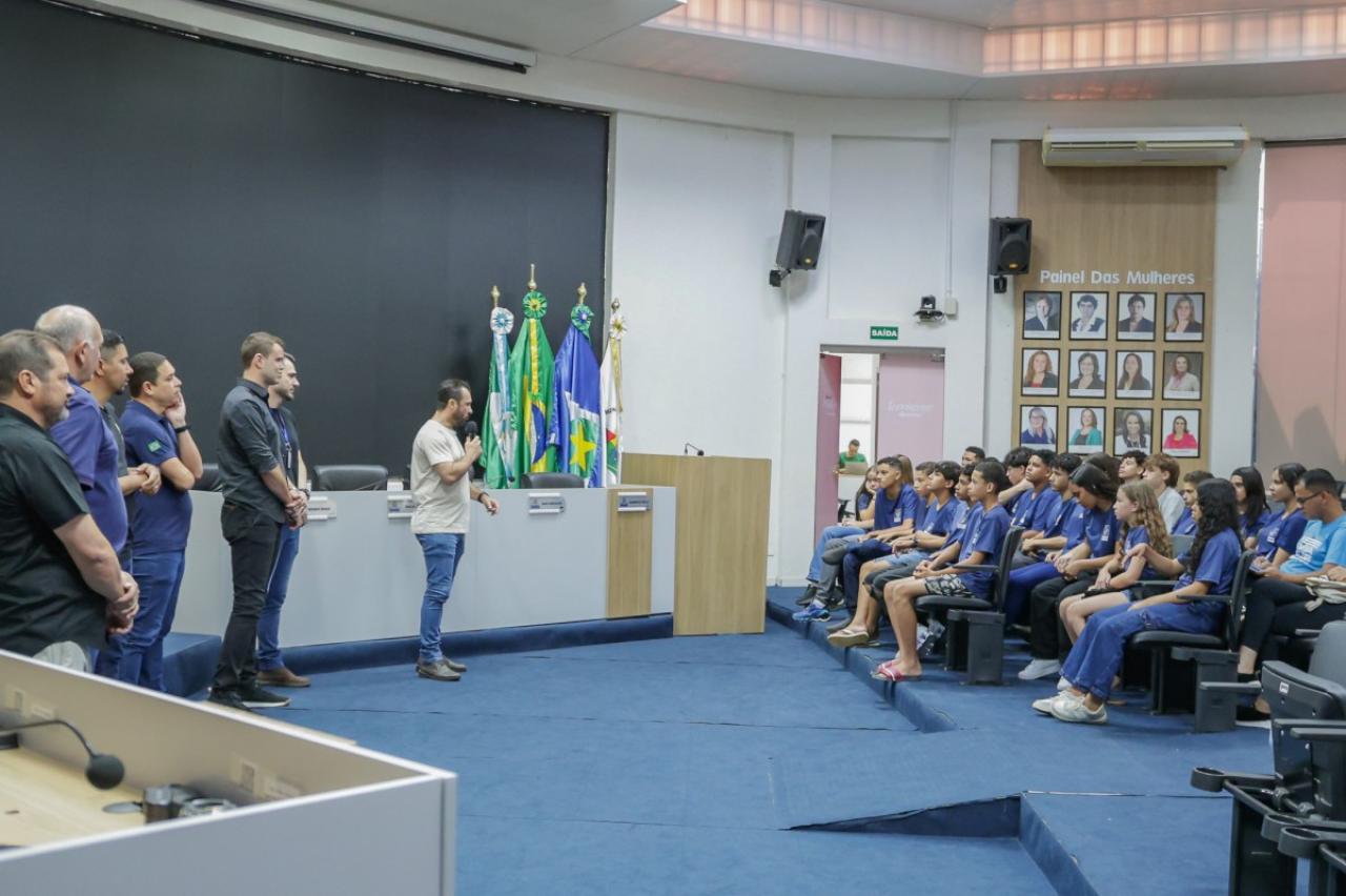 Os estudantes foram recebidos pelo presidente da Casa, Rodrigo Matterazzi, e pelos vereadores Diogo Kriguer, Emerson Farias, Gringo, Brendo Braga, Wanderley e Prof.ª Silvana. Eles conheceram a história do parlamento e as dependências da Câmara Municipal.