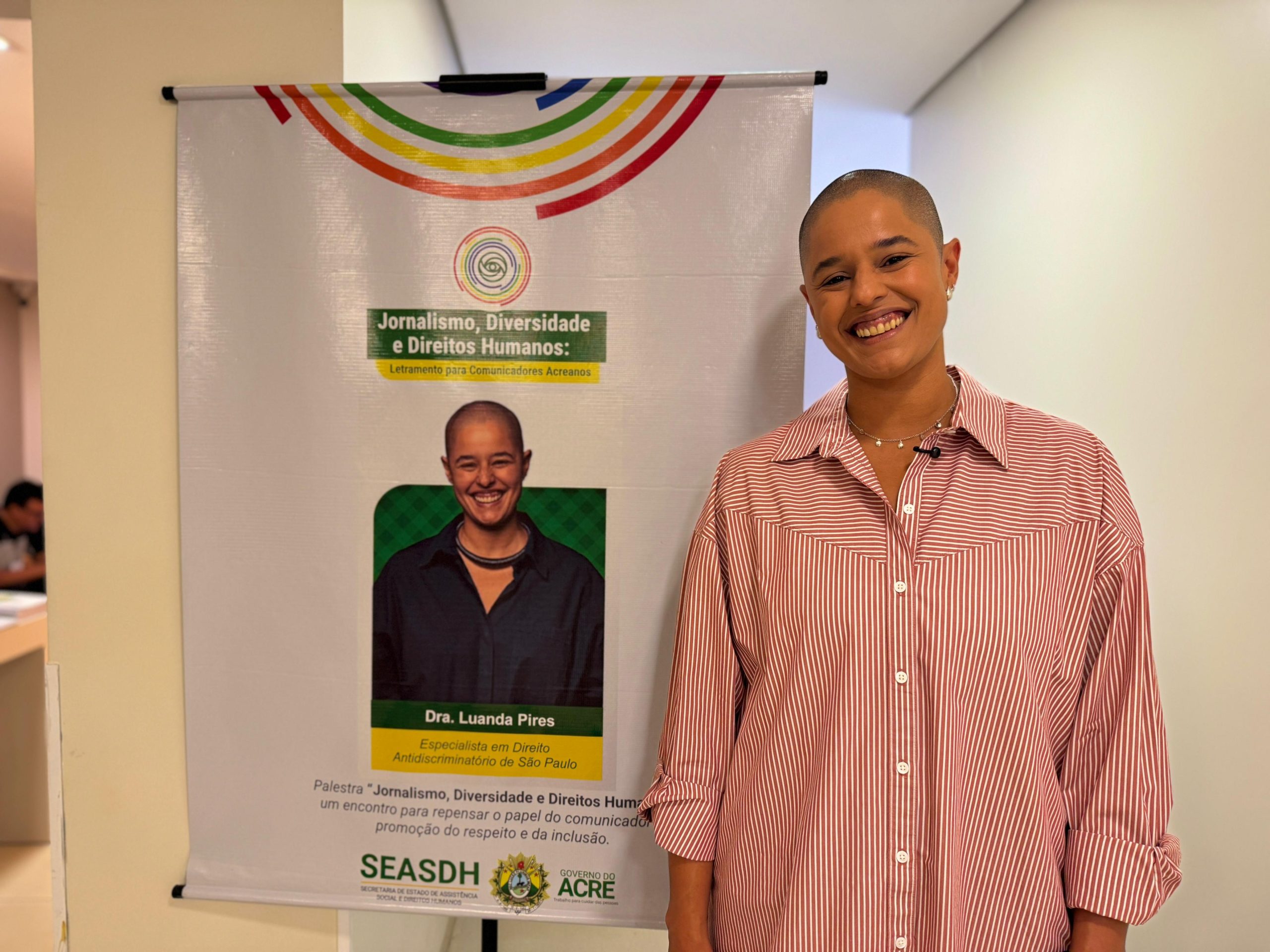 O encontro reuniu jornalistas, profissionais da comunicação e representantes de instituições de poder do Estado, com o objetivo de promover o letramento em diversidade e fortalecer o compromisso ético da imprensa acreana na cobertura de temas relacionados à população LGBTQIA+. A palestra principal foi conduzida pela doutora em Direito Antidiscriminatório Luanda Pires, advogada, professora e presidente da Comissão de Direito Antidiscriminatório do Instituto dos Advogados de São Paulo (IASP), reconhecida nacionalmente por sua atuação na defesa da inclusão e no combate à discriminação.