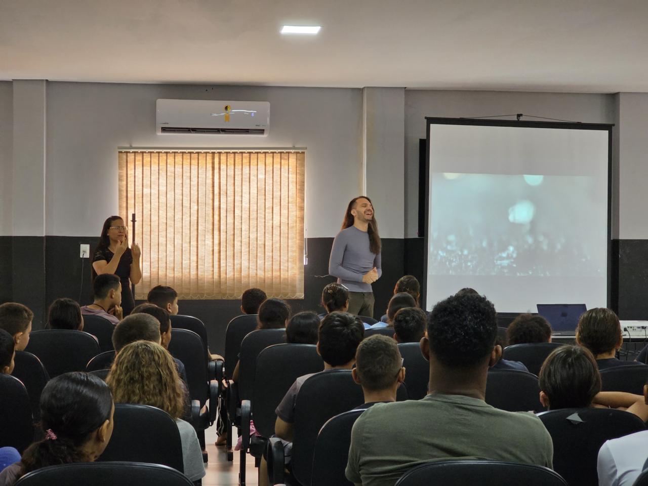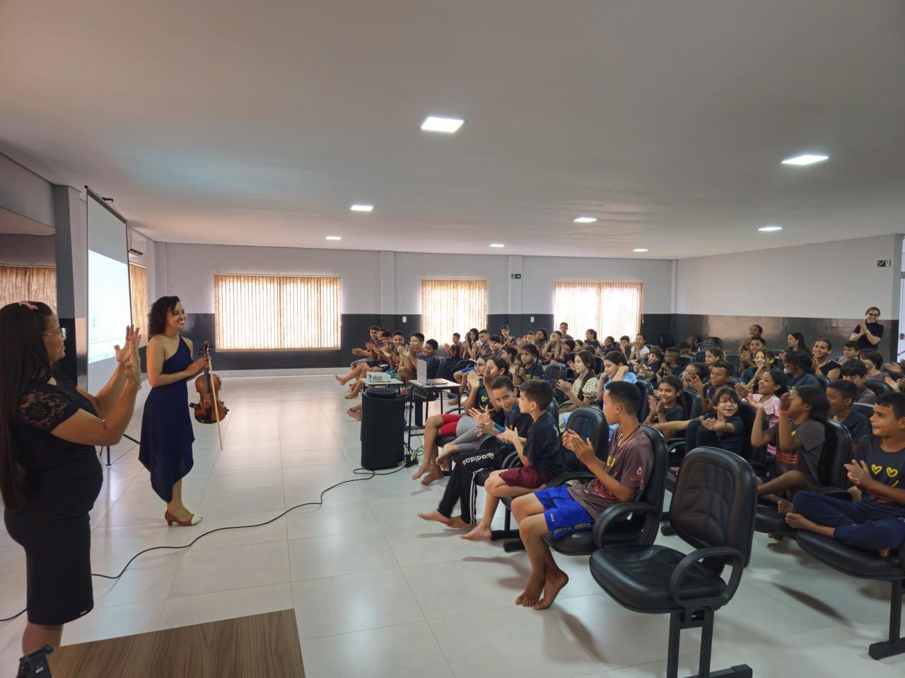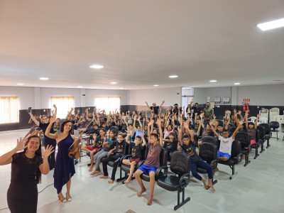 Como contrapartida social, Jessica e Pablo promoveram uma atividade no Centro Social Lar São Francisco de Assis, envolvendo crianças e adolescentes atendidos pela instituição. A programação incluiu a exibição do videoarte “Sorriso: Onde a Arte é Patrimônio Histórico”, produzido por meio do Edital nº 002/2024 – PROMIC “Festival da Cultura 2024”, formalizado pelo TCC 119/2025, além da apresentação de “Notas para Viver”. Durante a ação, Pablo abordou a arte urbana como meio de expressão coletiva e transformação social, enquanto Jessica tratou da importância da linguagem artística para o desenvolvimento humano e emocional. A atividade foi encerrada com uma apresentação musical ao vivo.