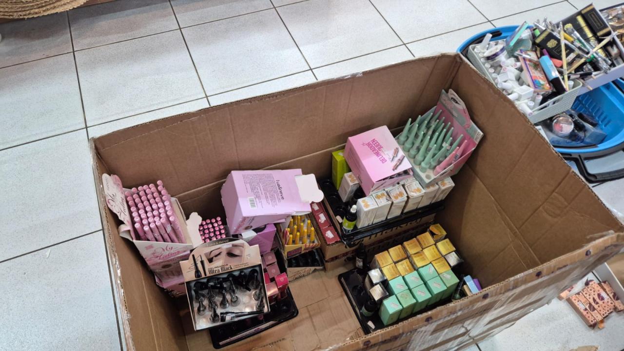 Durante a fiscalização, os agentes constataram diversas irregularidades, entre elas a exposição e venda de cosméticos com prazo de validade expirado, alguns vencidos há mais de quatro anos. Entre os itens apreendidos estavam maquiagens (sombras, lápis, bases e rímel, entre outros), além de produtos para unhas em gel e esmaltes, configurando risco à saúde e à segurança dos consumidores de Sorriso.