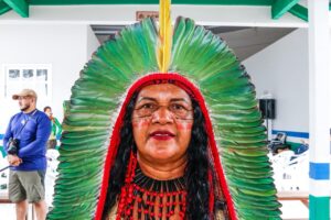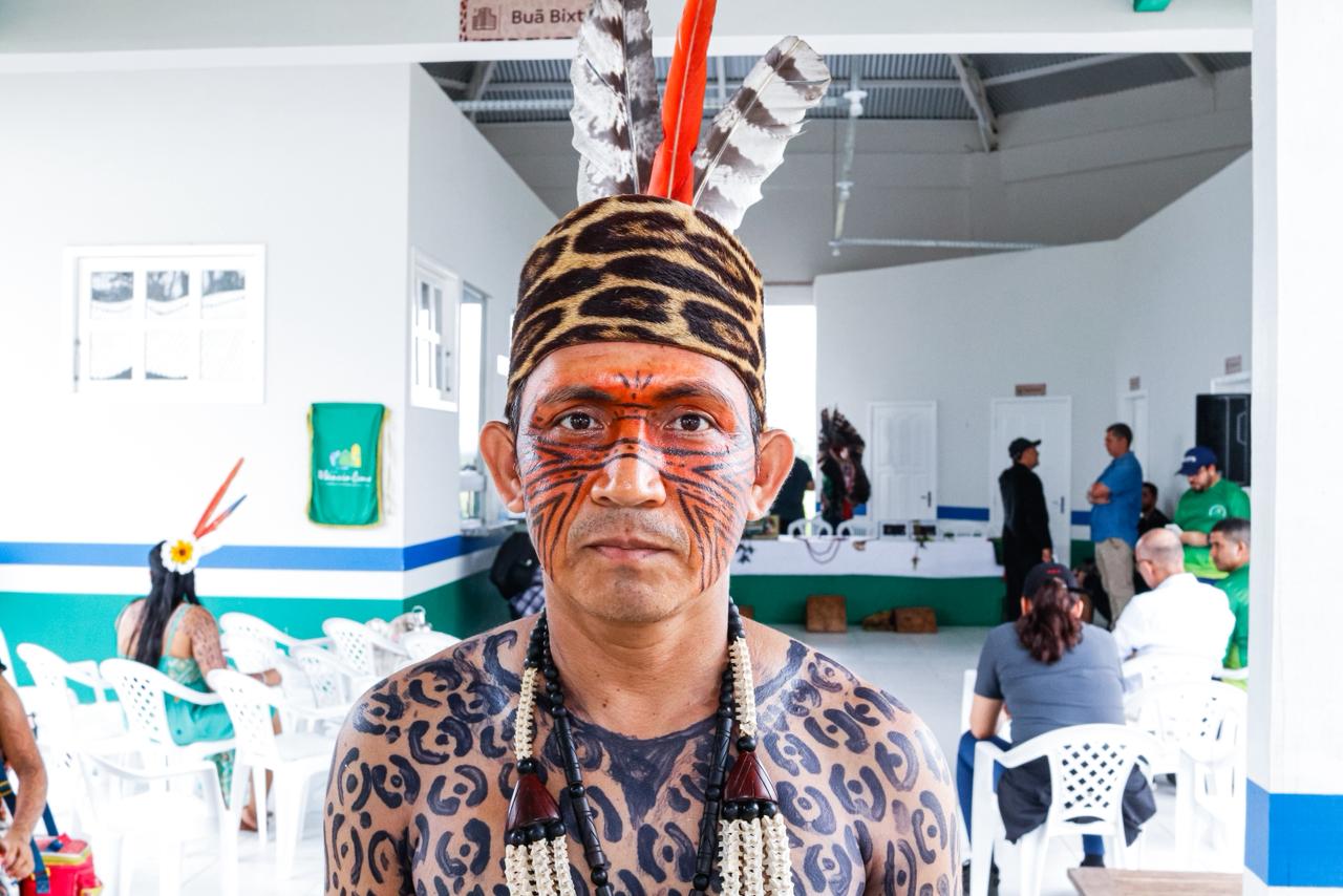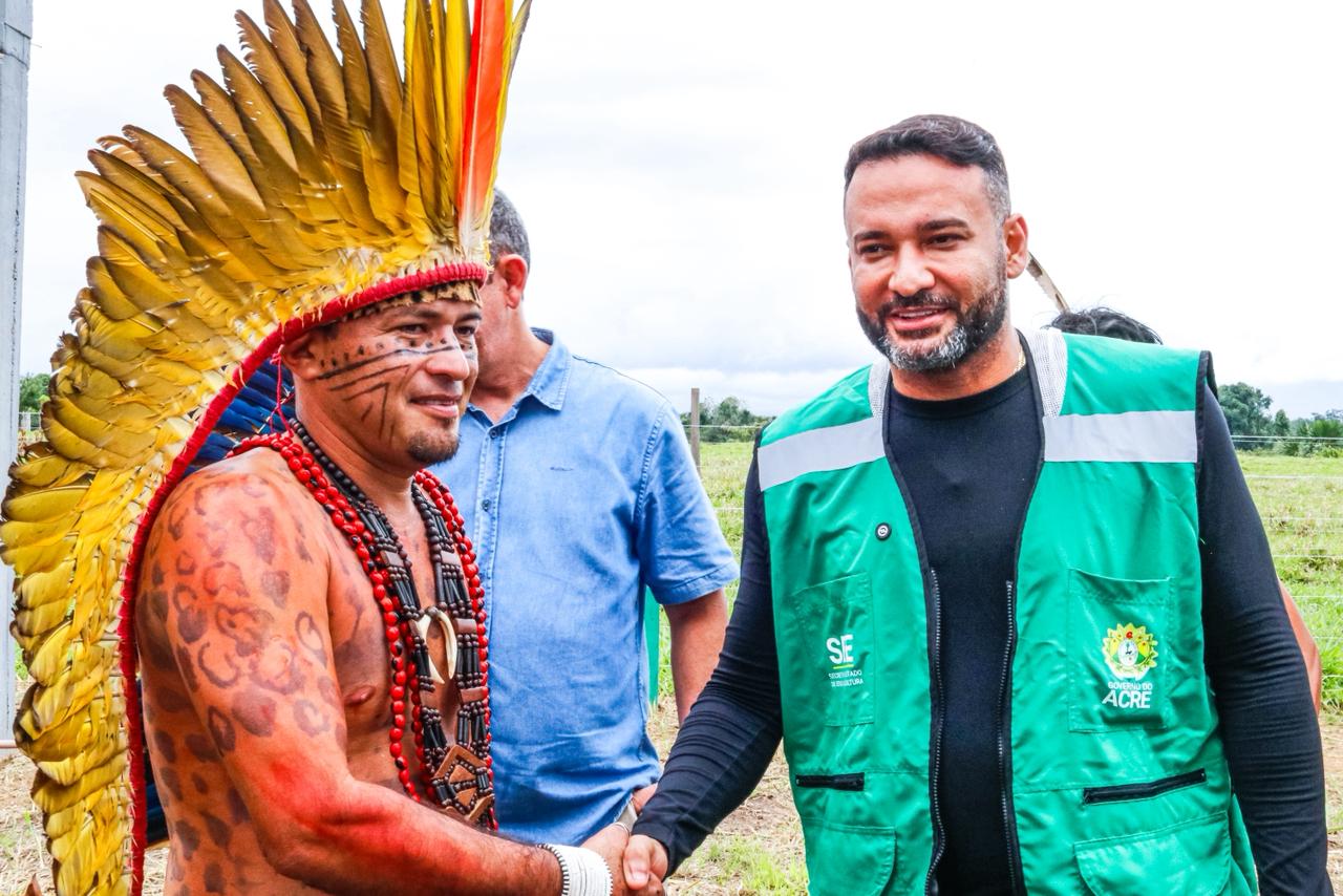 Xitin Nukini, cacique da Aldeia Recanto Verde e um dos articuladores da visita do governador Gladson Cameli à TI Nukini em 2021, celebrou a realização de uma promessa que vai beneficiar o seu povo.