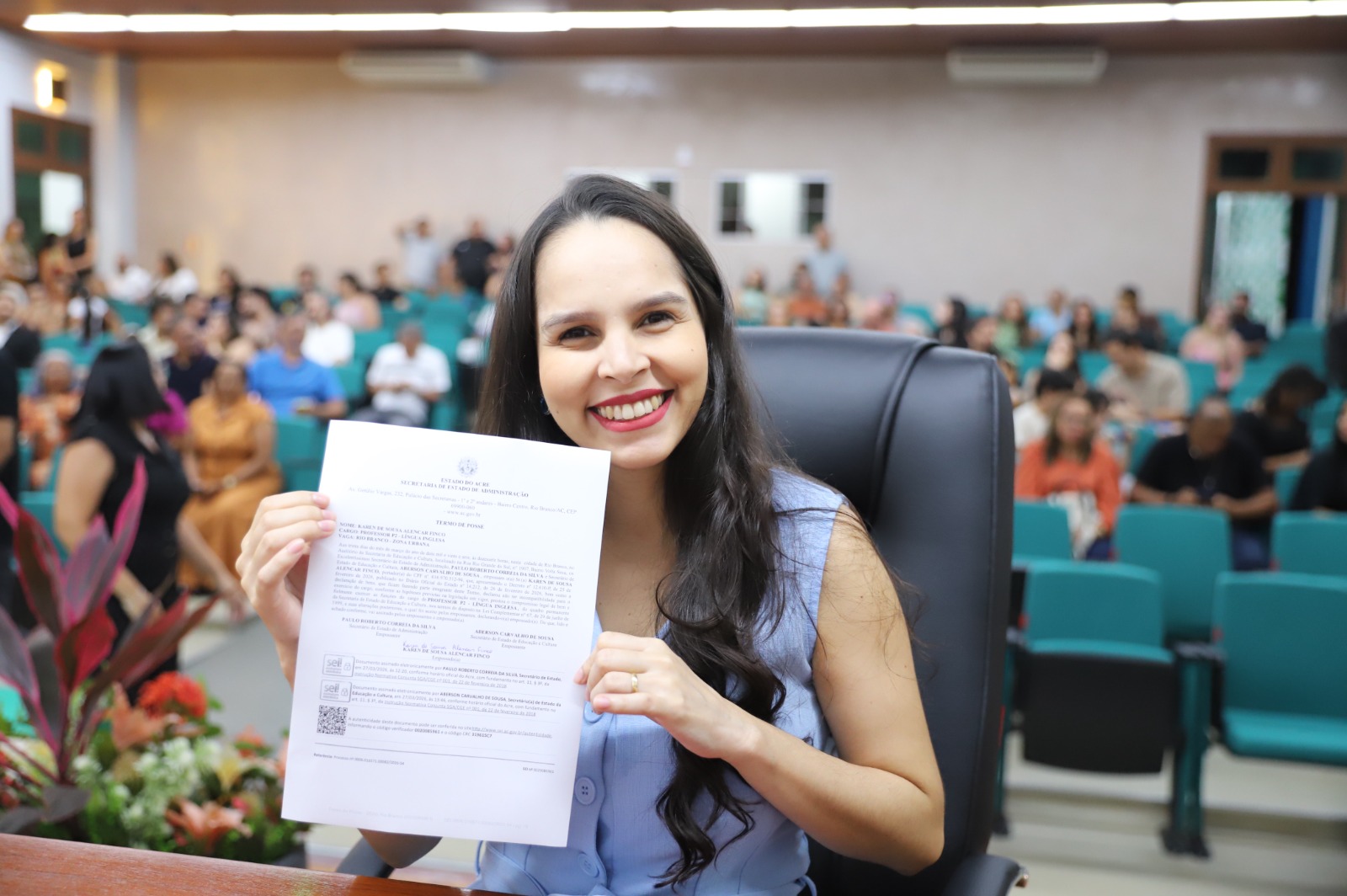 Outra professora que tomou posse no início da noite desta segunda-feira, 30, foi Maria Dayana Pessoa, de língua inglesa. Ela já participou de outros certames e já leciona há doze anos, tendo atuado em escolas como o Colégio Acreano, Serafim Salgado, Edilson Façanha e no Centro de Estudos de Línguas (CEL). “É um sentimento de alegria muito grande”, afirmou.