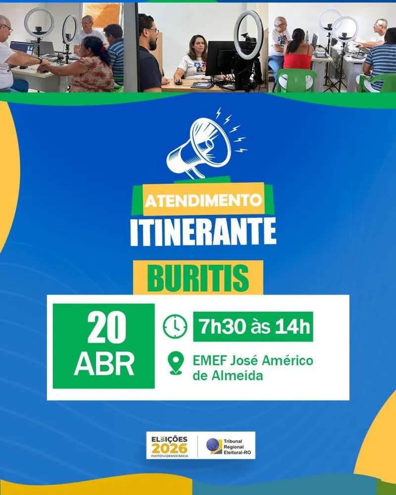 Com o objetivo de aproximar os serviços públicos do cidadão e garantir a regularização do eleitorado para o pleito de 2026, a 34ª Zona Eleitoral de Buritis inicia, nesta segunda-feira (13), um cronograma de atendimento itinerante em diversas frentes da zona rural do município.