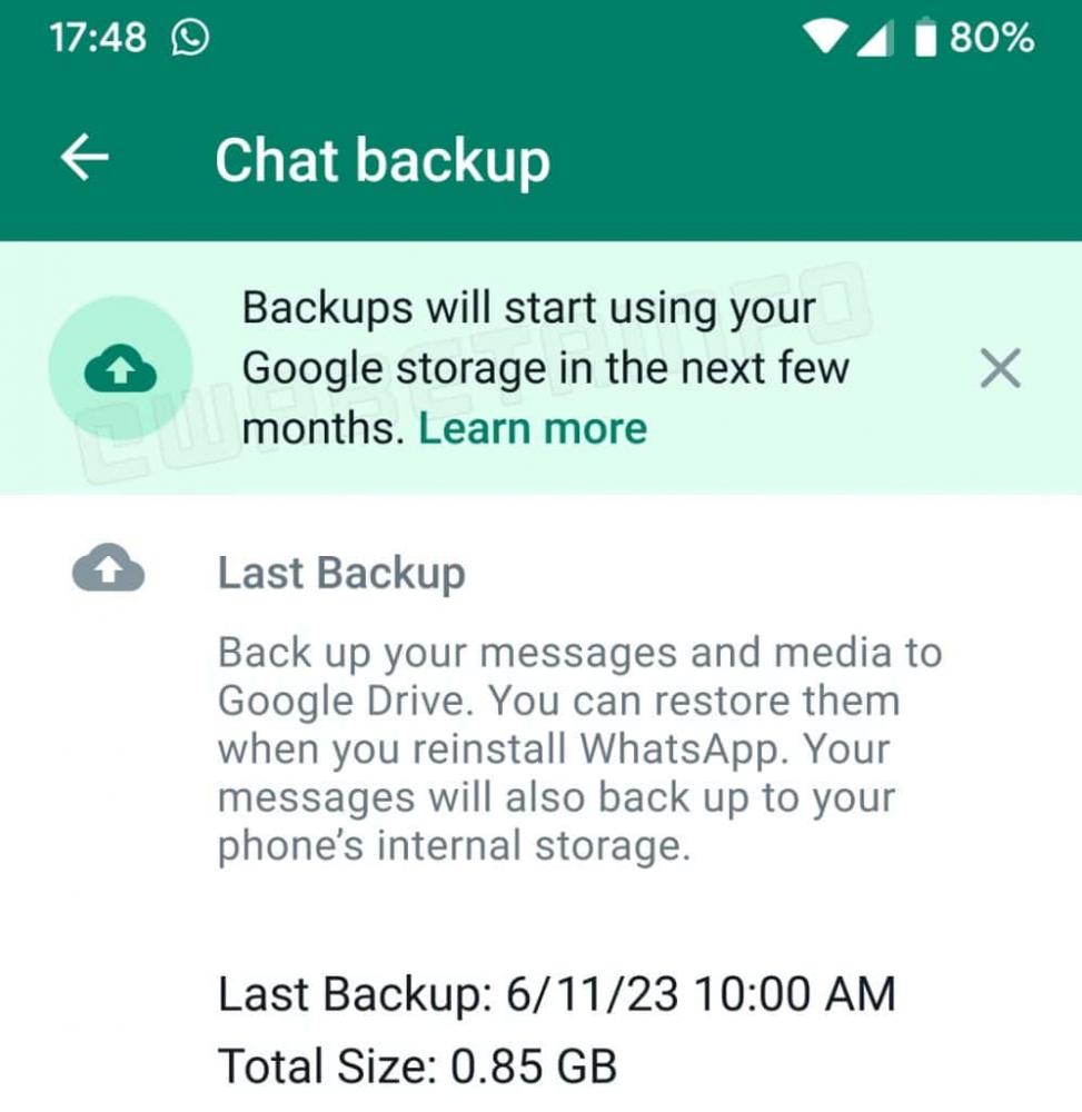 Uma versão de teste do WhatsApp apresenta um alerta inquietante para os usuários: os backups de mensagens começarão a ocupar espaço no Google Drive. Isso é particularmente relevante porque o Google Drive é o serviço de armazenamento em nuvem padrão para muitos usuários Android, oferecendo inicialmente 15 GB gratuitos.