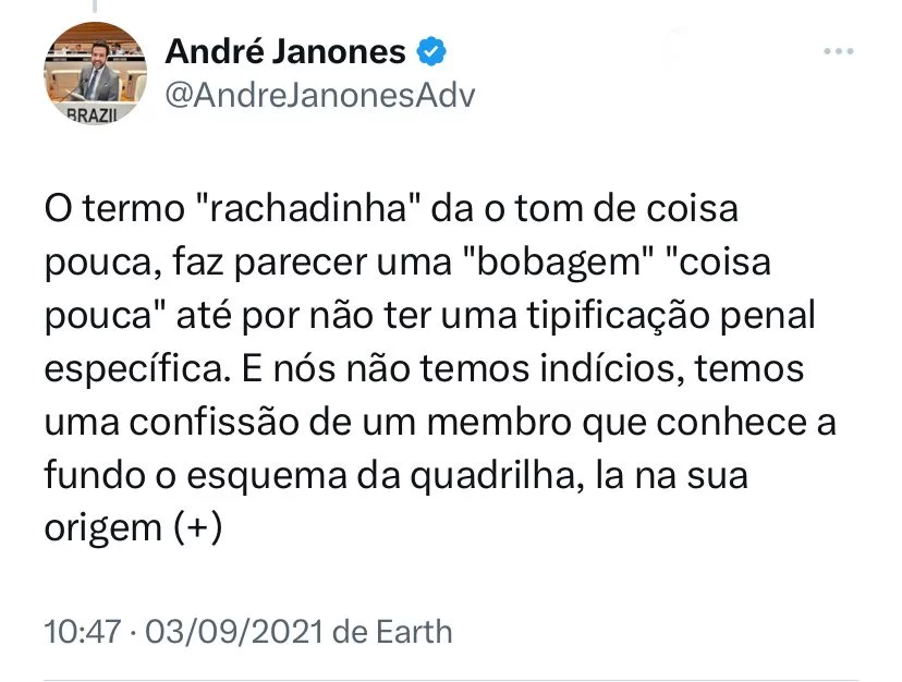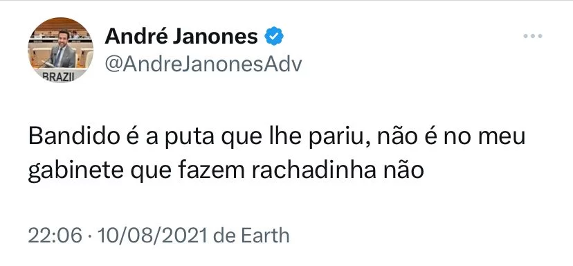 “Hoje saiu uma matéria, que está sendo espalhada pela extrema direita, que me acusa de rachadinha, coisa que eu nunca fiz. Pra isso eles usaram uma gravação clandestina e criminosa, um áudio retirado de contexto e para tentar me imputar um crime que eu jamais cometi”, diz a nota de Janones.