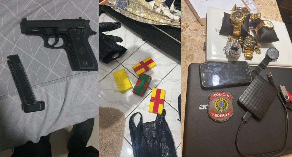 Foram apreendidos 25 veículos, jóias, drogas, duas armas, duas moto aquáticas e R$ 10 mil em espécie. Três pessoas foram presas em flagrante, duas por posse de arma de fogo (PVH e GMI) e uma por tráfico (GMI) – com 4kg de cocaína. Além de nove prisões preventivas.